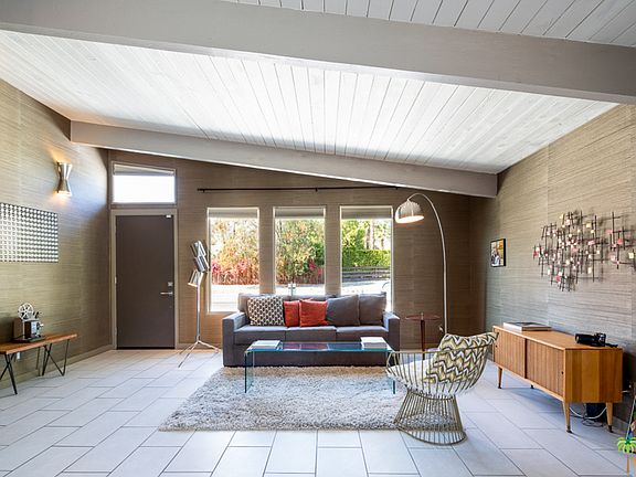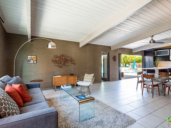 Winner on Designer Remodel TV Show!! Restored while adding many modern upgrades, this 1959 mid-century modern home is truly amazing. The large inviting living/dining room offers incredible mountain views. Remodeled chef's kitchen, with updated appliances and cabinetry and large island w/ seating which opens to the NanaWall (ENTIRE WALL OF GLASS OPENS TO THE POOL!) Enjoy Panoramic mountain views relaxing by saltwater pool/spa. Hang out under the cabana with friends surrounded by gorgeous designer landscaping throughout. Master bedroom is ensuite with updated bath. Two nicely sized guest rooms along with remodeled hall bath. Bonus room with enclosed breezeway (gym, art studio, office, 4th bedroom).. Updated plumbing, electrical, pool pump, lighting fixtures, 2 car enclosed carport, and laundry. Fantastic location, incredible views, no HOA, Fee Land (you own it).
