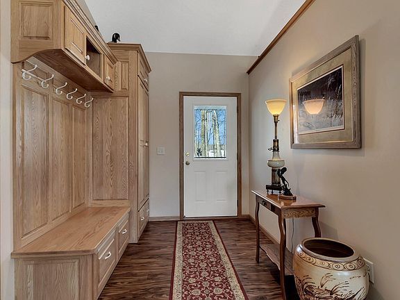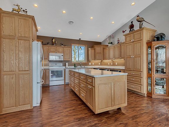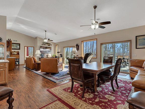 This is it! Premier Barnimuimum with loads of upgrades featuring all wood custom cabinets (no particleboard), 9ft ceilings throughout home & vaulted ceilings in the great room. Don't forget the wet bar, infloor heat, hot water on demand, geothermal with heat pump & forced air heating and cooling dual systems. The oversized attached garage includes RV stall, water faucets for keeping the 26x38 garage clean and floor drain. Property also includes an extra 30x40 detached garage with a storage loft and 86 acres of prime hunting land with trails, 5 deer stands, and a man-made 5 ft deep pond. Pre-approved Buyers Only.
