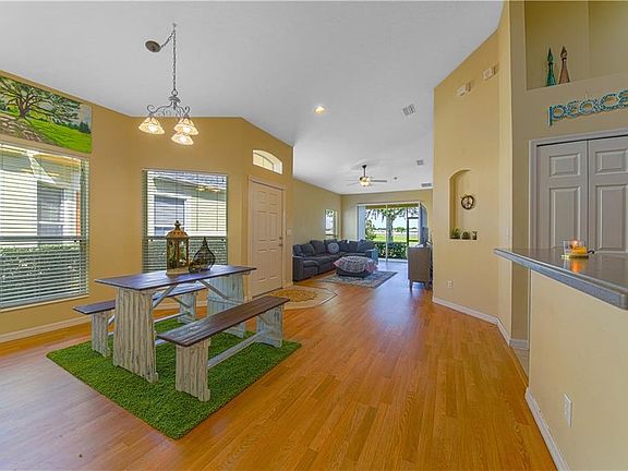 Make this one story end unit townhome yours today. This 2 bedroom home, 2 bath home features an office/den, an open, split bedroom floor plan with VAULTED ceilings in the dining, living area and kitchen. Tiled and wood laminate flooring, Corian countertops in kitchen and bathrooms.  The master bedroom in the back of the home has a large walk-in closet. Dual vanity and a large tiled walk-in shower in the en-suite bathroom. The living room sliding glass doors lead to the screened porch with no rear neighbors. The roof was replaced in 2018. HOA fees include cable with all HD channels, internet service, exterior and landscaping maintenance plus lawn care. Relax by the gated COMMUNITY POOL and FISHING PIER overlooking Lake Reeves.  Verandah's is a small, one road community in S.E. Winter Haven, located minutes from Legoland, Cypress Gardens Blvd, and SR-27. Don't miss out on this great home.