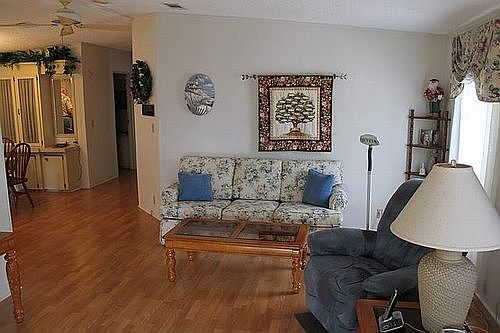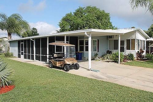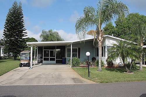 2 bed room 2 bath 1196 sq. ft. home features newer laminated floor, large bedrooms, double sink master bath extra large screened in lanai with windowed and air conditioned Florida room .You will enjoy the large eat in kitchen. The dryer is newer and the house comes furnished and includes a nice golf cart. SB1878