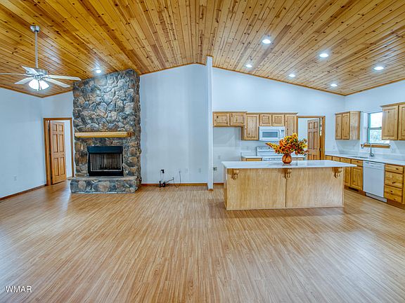 This must-see home is tucked away in the tall cool pines of the majestic White Mountains of AZ. This home is located in the highly desired community of Cedar Ridge. Skiing, hiking, fishing, and much more will be in your backyard! This home highlights a modern split floor plan, island Kitchen, cozy stone fireplace spacious bedrooms and two covered decks. A full update renovation was just completed including new quartz counters in the kitchen, new luxury vinyl plank flooring throughout, new fixtures, including a LED mirror in the guest bathroom with anti-fog and bluetooth speaker, new interior paint and exterior stain - just to name a few; room to add a garage if desired. A full list of improvements is included. Seller is motivated! Considering any reasonable offer.