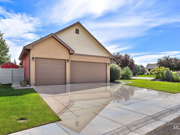 Come see this like new condition home in the perfect South Meridian location. This West facing 3 bedroom 2 bath with office, single level is located across the street from the private community park, corner lot with no back neighbors. 2018 New roof, new high-efficiency HVAC, carpet and flooring, custom master closet, heated garage, landscaping, gas fire pit. In the Mnt. View High School District