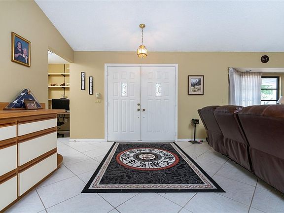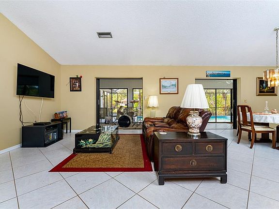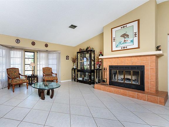Welcome Home! Spacious 2 Bed/2 Bath/2 Car Garage Pool Home with Water Access. A rare find, this open concept home has a huge great room with cathedral ceiling, two ceiling fans, wood burning fireplace and sliding glass doors to the Florida room. Tiled flooring throughout the home makes for easy clean up. Kitchen features domed lighting, tiled backsplash, breakfast bar and breakfast nook! Kitchen appliances include: Samsung French door refrigerator, Whirlpool built in oven, Jennaire cook top and a Sharp microwave. Master bedroom has a ceiling fan and walk in closet plus sliding glass doors to the pool area.. Master bath has a tub/shower combo and a separate shower, with a separate vanity and dressing table. Bedroom #2 has a ceiling fan and two wall closets and adjoining Guest bath which has a tub/shower combo. Florida room provides additional versatile space for whatever! Large laundry room has LG front load washer and dryer, built in cabinetry and a utility tub. Two car garage has an automatic garage door opener and pull down stairs. The mansard caged pool has a quartz finish. A/C replaced in 2014 and roof in 2007. This home has access to the Gulf of Mexico via Oyster Creek! Why wait to build? Come make this beauty your own!