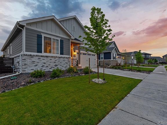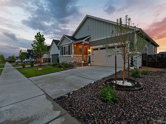 Welcome home! Stunning new home in Harmony neighborhood without the wait. This beautiful home was built in 2019 and has amazing upgrades as well as finished landscaping. The over sized kitchen is beautifully designed with granite counter tops, stainless steel appliances, island with seating area, back splash, and plenty of counter and cabinet space. The kitchen is open to the living room which is the most thoughtful design for entertaining. The home features 3 bedrooms including a generous master suite with a 5 piece bath and large walk in closet. The secondary bedrooms are equally spacious and share a second full bathroom. Spend the warm summer evenings in your HUGE low maintenance backyard with a Patio and fire pit. Other features of the home are: Paid solar system, 2 car garage, Air Conditioner, vinyl plank flooring, Vivint smart home system, and washer and dryer. Nestled in a family friendly neighborhood with a new K-8 school. trails, Parks, rec center and pool. Confidently located to I-70, E-470, Denver and DIA. Why wait to build this home has exactly what your looking for without the build time.
