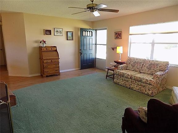 This two bedroom two bathroom one owner home is ready for new owners in the desirable community of Highlands Lakes. Spacious living room is open to the dining room which leads to the family room which could also be converted to a third bedroom. The kitchen has ample counter space with closet pantry and room for a bistro set. There is a pass through from the kitchen to the family room which opens to a patio ready for grilling. The roof was installed August of 2015 and the 2.5 ton AC unit was installed in July of 2010. Backyard has room to garden or create a bird sanctuary or just leave it to the lawn care company. Newer carpet in living room and master bedroom with laminate flooring in the dining, family and second bedroom. Highland Lakes is a gated community with a clubhouse, indoor tennis court, stage, exercise room, library, kitchen, billiard room, craft room, and meeting rooms. There are six tennis courts, eight shuffleboard courts, four bocce ball courts, six horseshoe courts, golf driving range, free RV and boat storage, indoor (heated) and outdoor pools, a well-equipped woodcraft building and a softball field and over fifty Activity Groups.