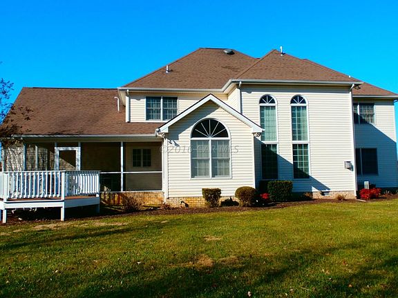 Stunning home with exciting features! This home offers all the amenities that you could ever want. A grand foyer with soaring ceilings is perfect for greeting your guest.Large kitchen with solid surface counters and an adjoining breakfast area. The family room with volume ceilings features lots of windows and a fireplace.The downstairs office has an adjoining bath. The upstairs features a deluxe master suite with a tray ceiling. For your outdoor living pleasure a porch plus a deck all on a very private home site.A double car garage , paved driveway and in ground sprinkler system complete the picture. One year home warranty. Don't miss this one.