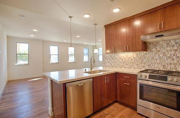 LOCATION, LOCATION, CONVENIENCE: Beautiful, Modern Two bedroom, 2 bath ground floor condo. Located at Alameda Landing, a pedestrian friendly-urban village, "In the center of it all." Commuters dream, located close to the Alameda Ferry and Free BART shuttle to 12th St Station. Close to the College of Alameda, the former Naval Air Station with Brewery and Winery, bordered by retail and fun restaurants as well as Safeway and Target. Living Room and Dining area have hardwood flooring, recessed lighting, pre-wired for TV, phone and cable, as well as 1/2 hot outlet and switch. Stainless steel Bosch Gas Range and Dishwasher. Stainless steel sink with crushed quartz counter top. Stackable electric washer and dryer, Refrigerator. Light Filled carpeted Master bedroom with walk-in closet, tiled bath with enclosed shower-tub. Second Bedroom can also be used for a beautiful office with spacious windows. Two Car Tandem Garage Three areas of open space complement Alameda Landing: The Village Square, with adjoining Peaceful Garden as well as Town Square Open Space. Retail and Restaurants right across the street. CALL OR TEXT to schedule an appointment Saturday or Sunday afternoon or by special appt. Tenants pay all utilities. NO SMOKING