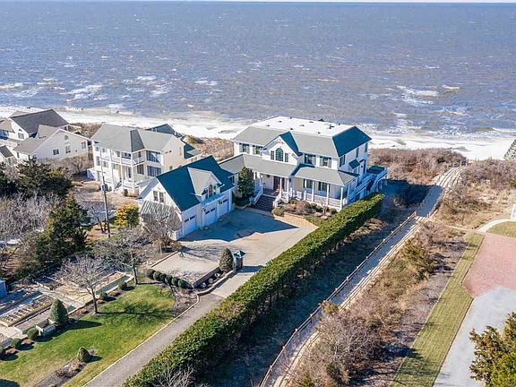 Welcome to Anchor Bay! This home is a full on, astonishing beachfront, unobstructed water view estate offered only once in a blue moon! It's located on .886 of an acre on the Delaware Bay beachfront. Beautiful ever-changing sunsets, with the relaxing beach as your back yard and easy access for all your water toys: wave runners, kayaks and paddle boards, this home can accommodate everything. Over 6600 square feet of pure elegance built by the premier builder of prestigious seaside homes, D. L. Miner, the original homeowners worked with the architect, James Heffelfinger, to build an astounding five bedroom, five and a half bath private seaside luxury villa. You'll love the exceptional craftsmanship, attention to every detail, top quality design and one-of-a-kind architectural elements--including cove lighted tray ceilings, a grand two-story foyer with a dramatic staircase and a retractable glass-enclosed full season sunroom that overlooks the bay. Words cannot do justice to this home as the designers and builders have created a masterpiece. The home offers relaxing coastal influenced designs and furniture to accommodate family, friends, kids, grandkids and pets. The waterfront office serves as an entrance to the waterfront master suite with private deck and newly installed storm shutter. The office has a monumental hammer-beam ceiling reminiscent of an English castle's great hall. It has a superb Palladian window, unobstructed views of the beach, bay and sunsets. In this home you can combine a great location, extraordinary views, and magnificent architecture in one palatial package, yet it's comfortable and relaxing for the whole family. A few of the home's other assets include: a magnificent panorama of the Delaware Bay from the living room, kitchen, sunroom, and dining room. Most of the bedrooms have private tiled baths and water vistas of their own, most bathrooms have granite counters and under mounted sinks, many also include luxurious exotic stone floors and walls. The beautiful wide water views create memorable sunset evenings over dinner with family and friends. The kitchen boasts granite counters, a massive center island with inset steamer, two dishwashers, subzero refrigerator, subzero freezer, Wolf oven and cook top and walk-in hall pantry. There are retractable awnings shading the amazing decks when needed, so dining and outside living is easy and breezy. There's a wide, covered front porch, for morning coffee and a separate wing of the home for family and friends, allowing privacy for all. An elevator accesses all levels including the basement. Oh, the basement. It's mostly above ground and has at least ten rooms. I've lost count; gym, full bath, second laundry, utility room, beach storage room, boat equipment room, wine cellar, workspace/ fish cutting station, HVAC center, and more. Don't forget to see the three car garage, with an epoxy resin floor. An impressive dune was reinforced with buried Jetty rocks and natural plantings, so you'll always have protection and privacy from the beach. A large yard and garden area offers enough space for a pool, though the water view Hot Tub on the main deck may be all you really need. Amazing views, space to spread out and plenty of room for everything and everyone! The home is being sold with most of the furnishings included. A complete furniture inventory will be available with an accepted contract. There's so much more to say but a showing is the only way to fully appreciate this home. Appointment only, prequalified buyers only and a must see in person home to do justice to all that this home and property encompasses.