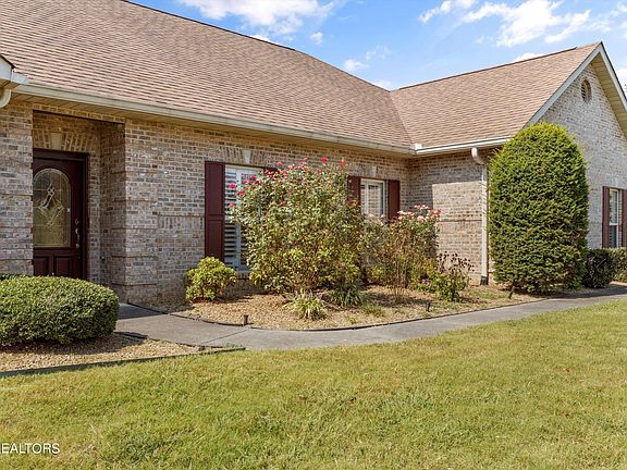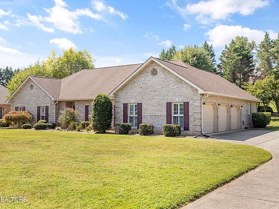 and laminate flooring throughout the plan with NO carpeting. The kitchen is spacious with a large eat-in breakfast area. Tiled backsplash and solid surface tops are enhanced with stainless appliances. Nine foot ceilings through this 4-bedroom home make it feel even larger. The great room has a gas fireplace and opens onto a huge sunroom on the back of the house that is also heated and cooled. One bedroom is designed as an office, but it can be easily transformed back to space for bedroom furniture. Primary bedroom is a nice size and has a new tiled handicapped accessible shower stall. Laundry room is also huge with a half bath attached. Cabinets galore can be found there. The three car garage is more than enough room for cars and a work area. You'll want to grab this one and add your own touches to it.