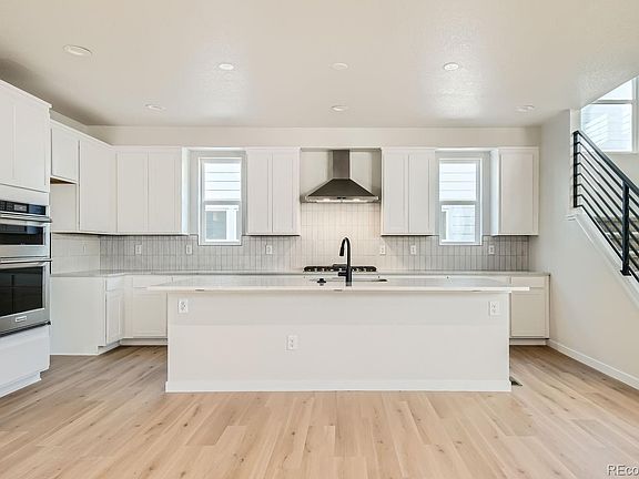 Welcome to this stunning new construction home featuring an open and spacious floor plan, perfect for modern living. The beautiful kitchen boasts a large island, gourmet KitchenAid appliances, and ample counter space, making it an entertainer's dream. A generous pantry provides additional storage. The main level also showcases luxurious luxury vinyl plank flooring and a sleek metal railing that adds a touch of elegance.