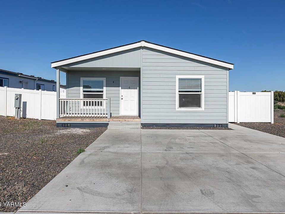 LOT FEE DISCOUNT!! Purchase this property, you'll receive a special 'lot fee' discounted rate: Just $300/month for the first year and $400/month for the second year and then back up to the $500/month lot fee. Step into this beautifully maintained 3-bedroom, 2-bathroom home nestled in the desirable Meadows neighborhood of Sunnyside. Built in 2023, this modern residence offers 1,352 square feet of thoughtfully designed living space perfect for families, professionals, or anyone seeking stylish comfort and low-maintenance living.The open-concept layout welcomes you with a spacious living area that seamlessly flows into a fully equipped kitchen featuring a refrigerator, stove, microwave, and dishwasher--making meal prep and entertaining effortless. The vinyl and carpet flooring throughout adds both warmth and durability. Retreat to the private master suite, complete with a full bathroom and generous closet space. Two additional bedrooms and a second full bath provide flexibility for guests, home office use, or growing households.Enjoy year-round comfort with central air conditioning and forced-air heating, plus the convenience of in-unit washer and dryer hookups. Step outside to a low-maintenance landscaped yard, ideal for relaxing or light gardening, and take advantage of the double-wide concrete driveway with space for two vehicles.Located close to local schools, shopping, dining, and just minutes from I-82, this home offers the perfect balance of quiet community living with easy access to city conveniences.