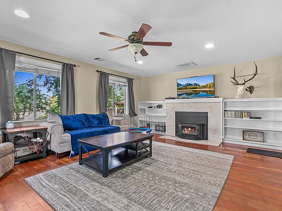 This cute East Medford cottage sits on a spacious 0.34-acre lot and offers a warm, inviting feel of home. The large living room features wood floors, a cozy fireplace with built-ins, and abundant natural light. A spacious kitchen features knotty hickory cabinets, a roomy dining area, and a large walk-in pantry. The primary bedroom includes a walk-in closet, and both bathrooms have been nicely updated. The separate hobby/office room opens to a covered patio and a private backyard with mature landscaping and two storage sheds. Additional highlights include a tankless water heater, gas forced-air heating, new roof, and front & back automatic sprinklers. Topping it all off is 3 plum trees, 3 apple, 3 cherry, 1 pear, 1 walnut, grapes, blackberries, and a strawberry patch perfect for buyers who appreciate a touch of farmhouse charm. Call for your tour today!