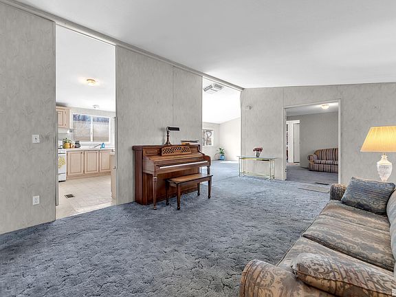 Charming 3 bed, 2 bath manufactured home nestled in a gated community with mature trees for ample shade. Enjoy community amenities including pool, club rec room, and basketball court. Conveniently located near shopping, university, and freeway access. Features a 2-car garage and freshly painted exterior. Your ideal blend of comfort and convenience awaits!, Buyer and Buyer's agent to verify all information provided on MLS.
