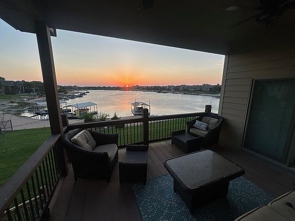Lake living at its best!! From the moment you come thru the front door, you'll love the open floor plan that has the kitchen and main living area flowing together. Perfect for large gatherings, or all of your friends to enjoy. The huge living room windows show off the stunning lake view and has a beautiful stone gas fireplace. The kitchen features a domed ceiling with plenty of cabinet space, commercial grade oven and gas stove top, a walk in pantry, stainless appliances and a stunning oversized granite island ideal for entertaining and for large gatherings! The large picture window behind the dining table will show you daily sunsets over the no wake zone of this beautiful lake. You'll find the master bedroom just around the kitchen corner, and yet another breathtaking view of your lush backyard and private beach area, complete with your own covered boat dock. You'll also have the option to purchase the 22 ft. Cobalt ski boat that has called Emerald Bay home for the past 7 years. Off the master bedroom is a spacious master bath and it's whirlpool tub, large shower, twin vanities and oversized walk in closet. Past the closet is the laundry room that has ample cabinet and countertop space to make laundry a breeze. The main floor also has a 2nd and 3rd bedroom. Both of these bedrooms have large walk in closets and each have private vanities and sinks. They are joined together with a Jack & Jill full bath. As a huge bonus, this home has a very large finished bonus room over the garage - great to use as a play area,a hobby room, or spare sleeping quarters. This bonus room even has its own HVAC system. Once you go down to the fully finished walkout basement. The spacious open living room/ game room area also features another (almost) fully equipped kitchen. The only thing missing is the cooktop. It has a full sized refrigerator, oven, microwave and dishwasher. This family room also has a stone finished gas fireplace. Downstairs you'll also find bedrooms 4, 5 & 6. Each of these spacious bedrooms also have their own large walk in closets, and two have great views of the lake. This home has a 3 car garage and large work area. Every mans dream for all the tools and hobbies he may have. The exterior has a terrific patio area, and fire pit area. Ideal for relaxing and watching amazing sunsets over your sandy beach and calm lake waters! The home is located in a no-wake section of the lake so you can easily swim, float & paddle board right behind your home. Emerald Bays' 100 acre lake allows fishing, swimming, boating, skiing and is one of only 2 Wichita lakes that allow wake surfing. The neighborhood has beach volleyball, pickleball and basketball courts as well as a neighborhood pool and clubhouse you can rent for special occasions. Conveniently located near HWY96 for easy access all over town and with in the Maize School District w/ school bus pickup.