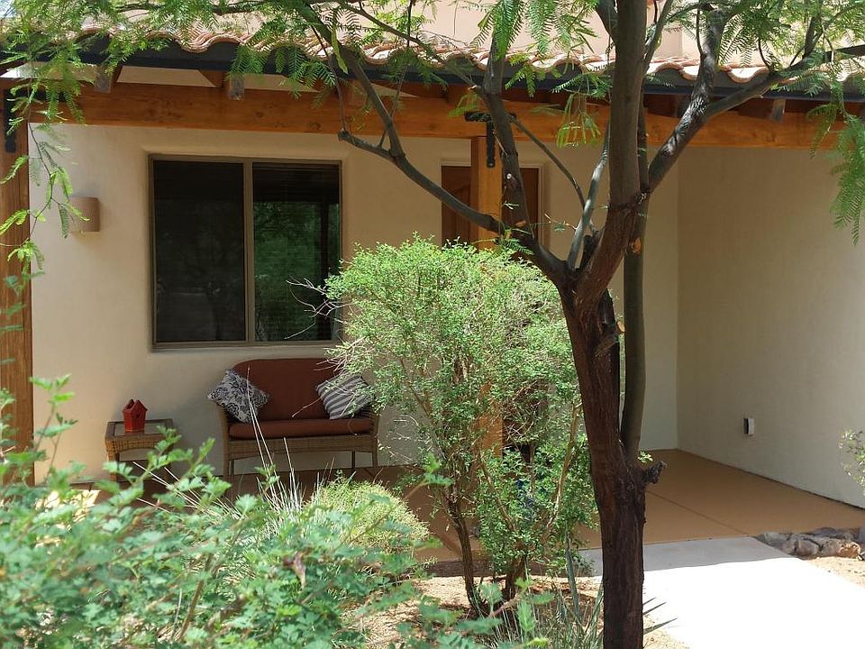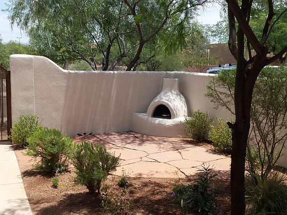 Rare hidden enclave of beautiful newer homes nestled in quiet centrally located neighborhood close to TMC, Basis School and Ft. Lowell Park. This lovely Southwest Barrio Style home has a charming courtyard with outdoor fireplace, covered porch and landscaped yard. Enter into a open floor plan with high beamed ceilings, concrete scored floors blending Great Room, Kitchen and Dining area along with gas fireplace. 3 large bedrooms and 2 full size baths, separate laundry, extra large walk in pantry and 2 car garage make this a perfect find!