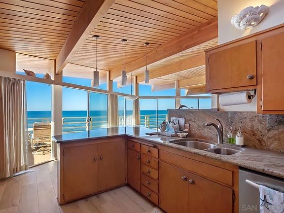 Oceanfront Mid Century Charmer! 50 feet of beach frontage. HUGE views from the living area and attached deck. This two bedroom two bath home has direct private access to the beach. Built in 1962, this oceanfront home has tons of charm as-is. The next owner may elect to add on to the existing home or start fresh. Property is 7000 square feet (50x140) and is zoned R-3. There is a in-ground swimming pool and a detached 3 car garage. Below the home is a private beach perched just above the public beach below.