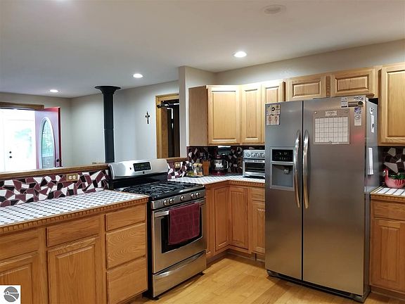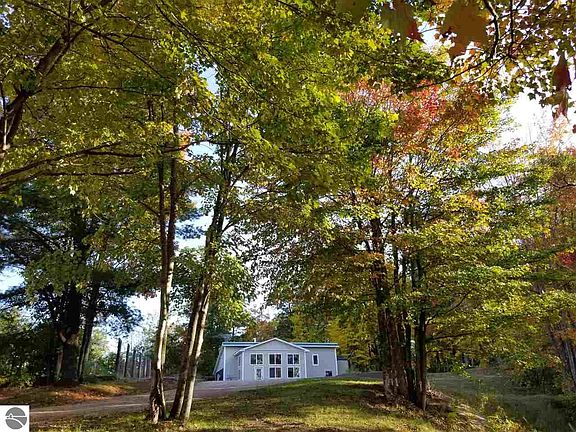 Unique opportunity to own a beautiful home adjacent to 20,000 plus acres of state land with mountain bike, horse and atv/snowmobile trails right out your back door. 5 minutes to Kalkaska Public High School, Downtown Kalkaska and more. This 2 bed 2 bath has been tastefully updated with hardwood trim - 6" baseboard, recessed led lighting and a stunning 23'x12' four season room with 12' ceilings. Would make a fantastic starter home or even a seasonal getaway for the outdoor enthusiast.