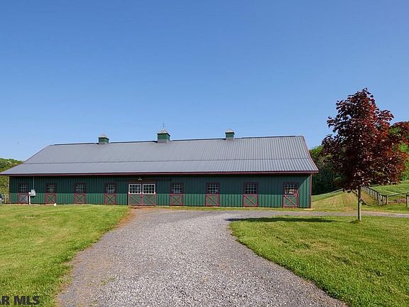 World class horse facility on 15 acres in State College School District. The 4 bedroom home was almost entirely refurbished in 2001 and features hardwood floors, large eat in kitchen, 2 baths and tons of character. The equestrian facility is a perfect environment for both horse and rider. Ten 12 x 12 stalls custom designed ironwork and rubber matting. Huge indoor riding arena with lighting, mirrors, kick boards and professional footing. Heated tack room with observation window into riding arena. Wash stall and heated bathroom with laundry. Six large pastures with ideal horse fencing. Two Implement sheds. Gazebo with breathtaking views and access to State Game Lands.