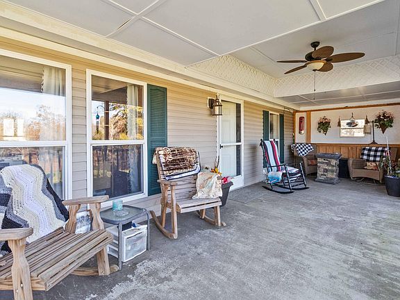 The covered front porch is perfect for sipping your morning coffee or enjoying dinner. The back porch provides a stunning view of the farm, Property is enhanced with 7 out buildings that include a workshop, a chicken coop, storage for farm, equipment and