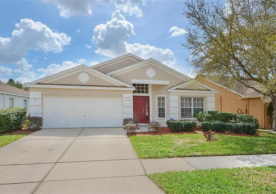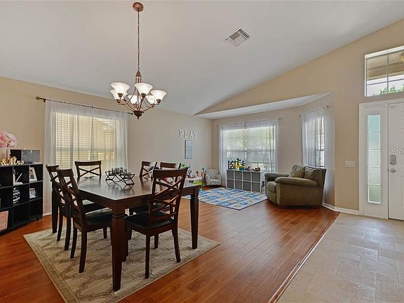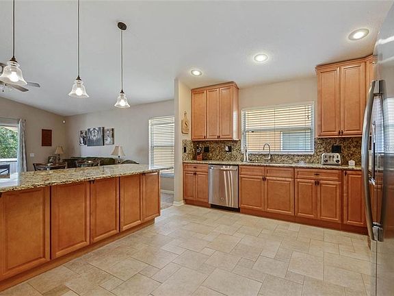 Fabulous home in a spectacular golf course community. Move-in ready! Gorgeous three bedroom, two bath home overlooking tranquil pond and lush conservation. Large (16x12) pavered and screened lanai. Volume ceilings and lots of windows make this home light, bright and airy. Ceramic tile laid in a decorative French pattern in entry foyer, kitchen, second bathroom, hallway and laundry room. Solid hardwood floors in both the living room and dining room. Kitchen features granite countertops, 42" maple cabinetry, granite backsplash, stainless steel sink with one-touch faucet, stainless steel appliances to include built-in microwave, refrigerator, dishwasher and smooth top range. Wonderful breakfast bar with pen lights. Master bath features double vanity, private water closet, ceramic tile, garden tub and walk-in shower. Generous master closet. Other features include recessed lighting, arches, niches and decorative molding, spacious laundry with washer and dryer, blinds throughout, ceiling fans, garage door opener, colonial trim doors, upgraded security system, newer in-ground irrigation system and much more. Newer AC and roof. Sit out on the covered a screened lanai and enjoy your tranquil pond view. Fenced back yard. Lexington Oaks features a community center, pool, playground and golf course. Only minutes to I-75, I-275, schools, the new Outlet Mall and many great dining options. Pride of ownership is evident. Hurry!
