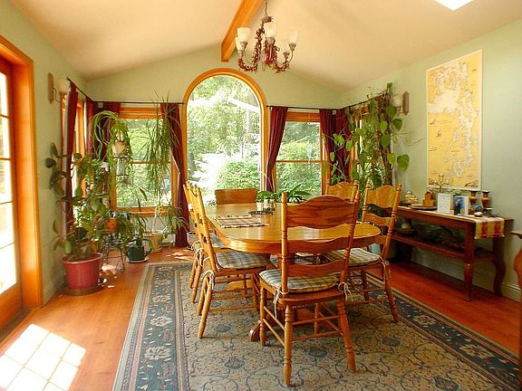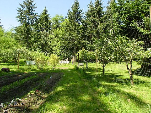 As you start down the driveway the sun streams through the trees to an opening where the home is located that has a bright, airy, private and secluded feeling, 4 acres of trees and trails, no neighbors visible or heard. The large four bedroom home with 2 bedrooms & a full bath on the main plus 2 bedrooms including the master upstairs plus a full bath, remodeled kitchen w/propane cooking, bright and airy dining room that overlooks a portion of the back yard, well maintained roof and gutter protection on the home, double car 888 sq. foot garage with living space plumbed for water above the garage and an additional dedicated work shop beside the garage. An expansive fully fenced 1 acre yard that secures mature raspberry & blueberry bushes, a large green house, fruit trees, large vegetable garden with deer fencing, woodshed and hot tub. New well house, water filtration system and separate electric panel with emergency back up generator hook up for house and well. All conveniently located within 5 min of the south end ferry and 20 minutes of the north end ferry.
