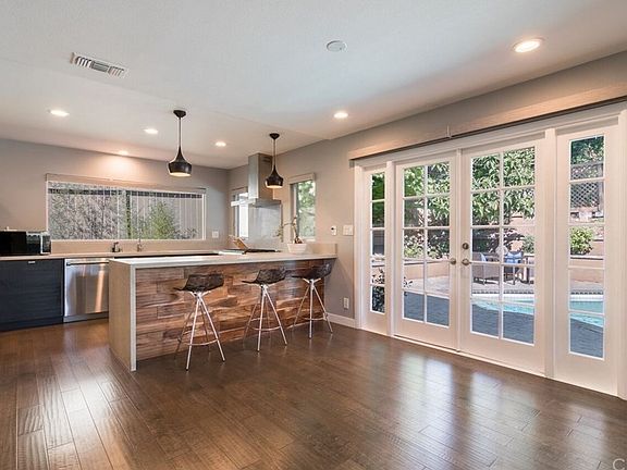 Immaculate modern remodel in Silver Spur! This four bedroom two bathroom home is sure to impress! The open floor plan was created for a spacious feeling and modern living. The custom kitchen features stainless steel appliances, quartz counter tops, espresso cabinets, and a large pantry. The living room is highlighted by a custom tile fireplace wall with crystal glass gas insert. The adjacent dining room features floor to ceiling windows with custom automatic sun shades. The master suite offers a bay window, walk-in closet, and a remodeled bath with a rain fall shower head. In addition to the beauty this home has to offer, there are a number of other amenities- gray birch wood floors, recessed lighting, new windows, a finished garage with electric car charging station, extra large stone paver driveway with room to park a 3rd car, a new 200 amp electrical panel, new washer dryer combo, new sprinkler system, a smart water softener, tankless water heater, new pool pump, filter, and light. Located on a quiet street in one of the best school districts in the country. This home has it all!