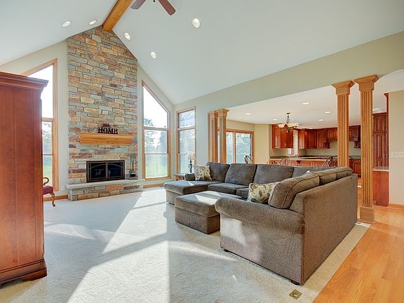Welcome to this custom built 4 bedroom home with upgrades galore including a spacious gourmet kitchen with hardwood floors, Brakur cabinets, breakfast bar, walk in pantry, built in desk, extra large sliding glass doors to spacious patio and large yard with no neighbors behind and park next door. First floor master suite with heated tiled floors, Jacuzzi tub, dual sinks, separate tiled shower and walk in closet in master bath. Cathedral ceilings in Family room with floor to ceiling stone and masonry fireplace. Formal dining room with custom built in china cabinet and decorative hardwood floors. Upstairs there are 3 bedrooms and a spacious bonus room with extra closets for great storage. Perfect for your office, kids play room or 5th bedroom. Full basement with high ceilings offers plenty of room for recreation, workshop, storage, bathroom rough in and 2nd rear staircase to over sized 3 car garage. Professionally painted inside & out. New carpet, new AC, new dual water heaters and professionally landscaped. Situated on the quiet section of Eastwood Drive in the desirable Highlands Subdivision. Enjoy Channahon School District and the award winning Park District with Community Pool and Golf Course. McKinley Woods Forest Preserve is within walking distance for all of your outdoor adventures. Hiking, kayaking, fishing and camping. Easy to show. Schedule your private showing today