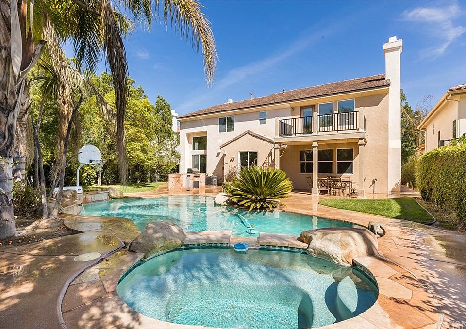 Top of the hill on a cul-de-sac street property with a Beautiful formal living room with a fireplace and a formal dining room with great views to the amazing back yard. Features an additional everyday large family room with built in shelves complete with a media center area. Large kitchen with a breakfast area and island ready for family gatherings. Spacious back yard with a great sized swimming pool, spa, waterfall, built in BBQ and covered patio just ready for entertaining. Kitchen has granite counter tops and beautiful cabinets with a walk-in pantry and large center island and double ovens. Wood floors in kitchen and dinning area and some hallways. Downstairs bedroom is perfect for a guest bedroom or an office or elders. Loft area perfect for a small office. Master bedroom features a balcony over looking the pool and spa and great mountain views. Master bath, glass shower, double vanity and 2 walk in closets " hers and hers ". Hall bath has double sinks and ceramic floor great for big family with kids. All bedrooms have a ceiling fans and laundry is located upstairs with plenty of cabinets. Property has a three car garage and this home is located near great hiking trails, Blue Ribbon Schools, shopping centers and dining and close to the 5 Freeway. A Must See and Must Have !