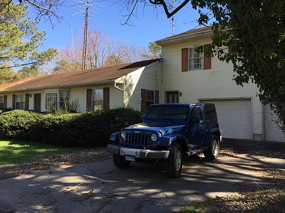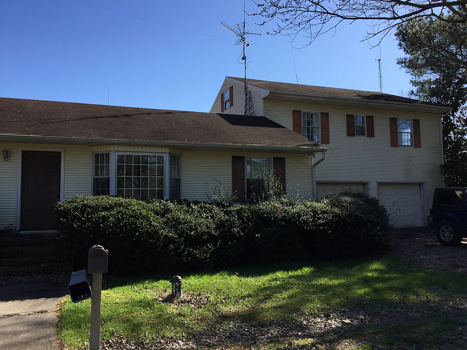 Main house 3BR 1/1/2 bath, living room, den, office, dining room, kitchen, floored attic length of house. Some hardwood, linoleum, and carpet. Upstairs apartment has huge living room, 1 BR, 1 bath, kitchen, office, two large closets and full floored attic. All appliances present and working. Oversized two car garage. Large rear lot. Property is 37,026 SF corner lot House needs TLC, cleaned up it can be lived in as is, but needs repairs and updating. Electric baseboard heat and central air downstairs. Wall installed air conditioner unit upstairs. Renting the apartment would completely cover a mortgage on this purchase or makes a great in-law suite. The apartment has its own electric, hot water heater, address, and driveway. A back deck and shed need to be removed and I think both downstairs bathrooms should be overhauled. Shrubbery and trees are overgrown. Both hot water heaters worked but need replacing. All appliances work and are present. I am not interested in 'rent to own' or 'owner financing'. The house has good bones, but we understand work needs to be done. We winterized it so services have been disconnected. Property is as-is, no warranties expressed or implied. House is outside city limits. Property taxes run about $1000 annually, sewer is $149 quarterly. Has 4" well with submersible pump.