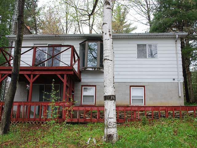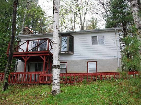 Seclusion and privacy with that Great up North appeal is what this house offers. Great view of the lake, with great fishing and boating. Nice place to swim and canoe or kay yak. This 2 bedroom house has the potential of more rooms in the basement if needed. This house is waiting for new owners to come and put some TLC to work, and make this place their own piece of paradise. Has a walk out basement right to the river so you are close to all the activities. The basement has a bit of history with the wet bar included. Living room has a nice bay window to view the lake. Great light house built by the previous owner. Has a 26x28 garage and a 15x15 shed for all your storage needs. Driveway is black top. 142' of water front on two lots is a rare find. Artisian well.