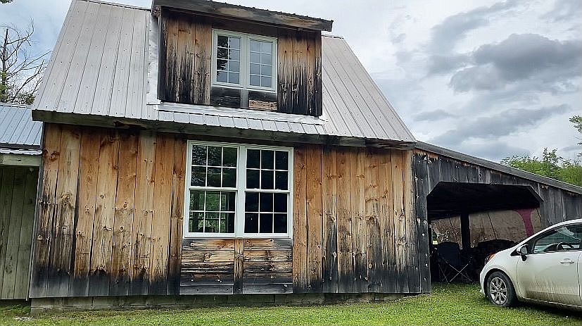 Hunting cabin with drilled well, gas appliances and battery/inverter lighting. 36 acres with mowed field and pond.