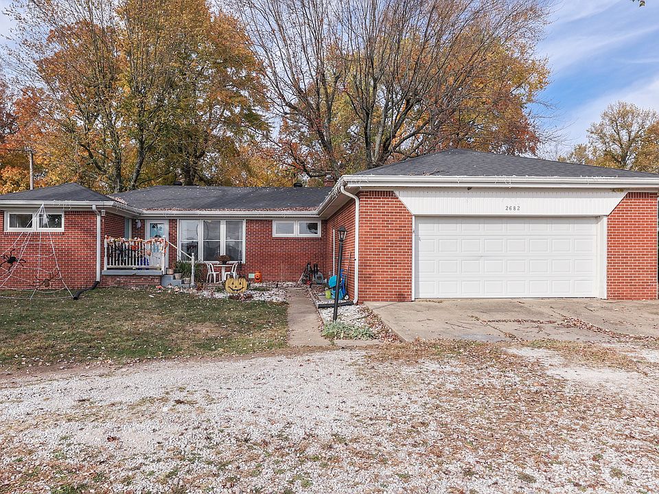 Welcome home to this all brick 5 bedroom, 1.5 bathroom ranch that sits on almost 1 acre! Step inside and be greeted by the wide open floor plan and tons of natural light! Beautiful newer laminate flooring throughout most of the home! Put your culinary skills to work in the beautiful kitchen while looking out at your peaceful backyard! Split bedroom floor plan with a large master! Oversized 2 car garage for all of your toys and a large circular driveway! Host your next family BBQ in the massive back yard complete with a basketball court, fire pit, and a wooded lot! NO HOA!