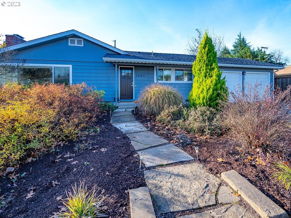 Location location location! Opportunity to own a turn key fully renovated one level sophisticated home in the heart of North Gilham walking distance to shopping center(s) with such businesses as: Starbucks, Home Depot, Cafe Yumm, Walmart & Market of Choice and the Willamette River bike path. Enjoy being only a 10-15 minute drive from downtown Eugene and the University of Oregon, and just 10 minutes from the PeaceHealth Sacred Heart Medical Center. This light and bright executive home lives large with its open floor plan. Chef's kiss to this spacious upscale kitchen featuring slab quartz & tile black splash, with premium stainless steel appliance package including a large capacity refrigerator / freezer, large island & deep sink. Relax in front of the cozy wood fireplace : situated perfectly adjacent to the bright picture windows in the sunken living room. A true Primary Suite offers dual closets and double sinks, quartz counters, and tile floors. Oversized interior Highly functional mud / laundry room Beautifully landscaped and fully fenced backyard featuring expansive deck, drip irrigation, flagstone patio, and raised garden beds. Keyless entry.