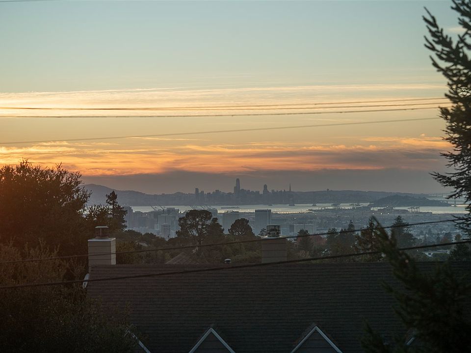 Gorgeous views of SF from the top floor primary bedroom en suite! Random oak plank wood floors carry you through the living, dining, hallway and mid level bedrooms. Elegant upgrades in the kitchen, bathrooms, additional closet storage, detached workshop, multiple patios. The kitchen has granite counter tops, stainless steel appliances, counter seating and terra cotta tile floors. The family room adjacent to the kitchen has a unique multi-purpose level. Up the rear staircase is the fourth bedroom doubling as a light and bright office, laundry closet for washer / dryer and at the top the primary bedroom is your private retreat complete with ensuite, front and back decks. Two walk in closets, bathroom boasts heated tile floors and towel rack, modern vanity and step-in dual head shower system. Set on a long quiet cul-de-sac in Piedmont Pines, Montclair Village is only a mile down the road. Just minutes away by foot is highly rated Montclair Elementary. Over $250,000 of improvements!