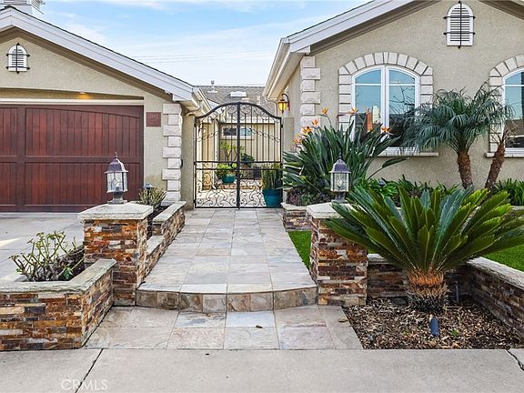 Exquisite and turn-key luxurious 4 bedroom, 4 bathroom home, with 3-car garage, located in prestigious Rossmoor within the top-rated Los Alamitos Unified School District, blending elegance, privacy, craftsmanship and functionality. Estate-style curb appeal and a secure front courtyard lead to a thoughtfully expanded interior. The chef's kitchen boasts custom cabinetry, stainless steel appliances, a seated island, beverage refrigerator and granite countertops. Rich wood flooring, open floor plan, spacious dining area and living room with fireplace adjacent to the kitchen, coffered ceiling details and recessed lighting enhance this homes warmth and flow.