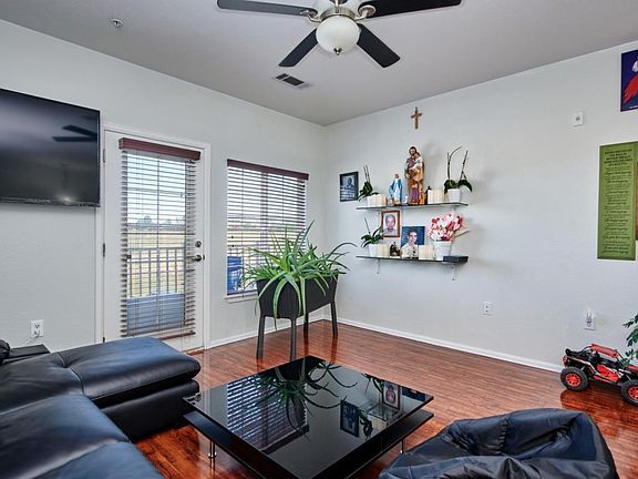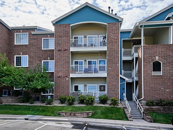 Cozy low maintenance condo in the Aurora Balterra Community! This move-in ready 2nd floor condo offers an open floor plan with beautifully modern hardwood and laminate floors. Kitchen features modern cabinets with black appliances and a pantry. There are two generous sized bedrooms, both with walk-in closets and one of the bedrooms has a spacious master bathroom. A convenient located stackable washer and dryer (included) near both bedrooms. Outside you will find a covered balcony with breathtaking mountain views!!! You won't want to miss the accommodating clubhouse with pool and fitness facilities just a short walk from your new front door. Great location, close to E-470, Southlands, public transportation, DIA, and Buckley Air Force Base.