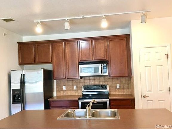Lovely 2 bedroom, 1 full bath home with an open floor plan with brand new wood flooring that was just installed. Comes with a detached garage right in front of the unit, with plenty of onsite parking spaces. Bright and sunny interior with large windows. Kitchen offers stainless steal appliances, pantry and a center island that opens up to the living room. Off of the living room is a private balcony with beautiful views. Large master bedroom with spacious walk in closet. All kitchen appliances, washer and dryer included. Clubhouse has fitness facilities & outdoor pool. Close Proximity to Movie Tavern, Stores & Restaurants. Easy access to I-225 & E-470 for commutes around City.