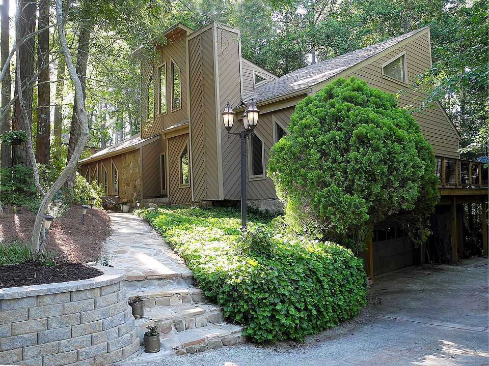 4 Bedroom 3 Bath home in top-rated Pope High School district offers many custom features. Updated eat-in kitchen with white cabinets, custom backsplash, solid black walnut countertops and stainless steel appliances. Large great room with stone gas fireplace. Vaulted ceilings throughout. Formal dining room with french doors leading to huge deck. Refinished hardwood flooring in great room and dining room. Dramatic three story foyer with marble flooring. Master bedroom with vaulted ceilings and gas fireplace. Updated bathrooms with dual sinks, new countertops. Large upstairs bonus room. Full finished terrace level with huge multi-purpose room and full bath. Lots of storage. Large workshop. Huge wrap around multi-level deck. New paint inside and out. New carpeting. Large private wooded lot with fenced backyard. New A/C with 9 years on warranty. New Roof. One year AHS home warranty. Agents welcome and protected.