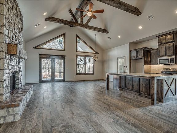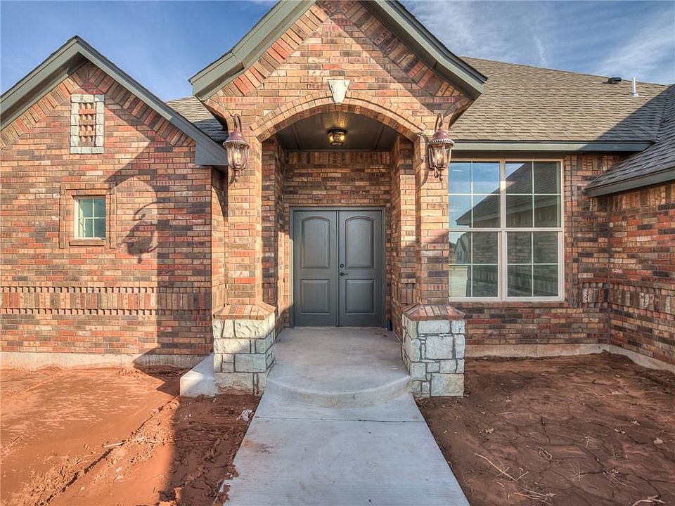 There is a WOW! factor everywhere you look in this stunning new 3 bed, 2 bath plus study in Blanchard's new Bridlewood addition. Covered entry with dual front doors welcome you into the AMAZING great space. Soaring vaulted ceilings, tons of windows, gas fireplace with custom mantle- you won't know what to look at next! Large kitchen island with sink, oversized pantry and granite counters make this the kitchen you've been waiting for. Master features bath with dual vanities, jetted tub and separate walk-in shower. Finally, don't miss the beautiful covered outdoor patio featuring it's own fireplace! City of Blanchard water, Pioneer Fiber internet. Don't miss this one!