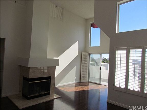 PETS ACCEPTED. Upper level condo with living room, dining room, kitchen, bathroom, and master bedroom downstairs; secondary bedroom and bathroom are upstairs. Freshly updated two bedroom and two bathroom condo with approximately 1,200 square feet in Hillcrest Village. Prime location with panoramic views from all rooms and oversized backyard balcony. This home is situated in one of the more private areas of the neighborhood and its one of the few units which offer peek ocean views on clear days. Amenities and updates include: new water-resistant wood laminate floors throughout, new granite counters in kitchen and bathrooms, gas fireplace and vaulted ceiling in living room, central air conditioning and heating, inside laundry closet, washer, dryer, and refrigerator. Parking includes a single car garage with remote and keypad entry, two decals for overnight outside parking, and ample guest parking. Hillcrest has a resort like pool, two spas, and BBQs. Lake Mission Viejo membership is included (private beaches, concerts, fishing, boat rentals, and recreational facilities).