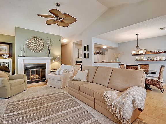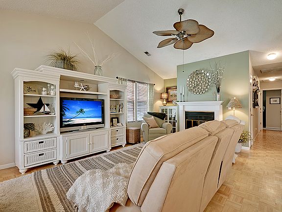 Welcome to this very well-maintained patio style home in Canterbury Woods! Pride of Ownership is evident from the moment you pull up, as you will quickly notice the nicely landscaped yard and curb appeal. This home consists of a great room featuring vaulted ceilings and a wood burning fireplace, galley style kitchen complete with black walnut countertops, nice dining area, 3 bedrooms and 2 full baths. Beautiful blonde parquet wood flooring in the main living area and kitchen. Both baths feature upgraded tile flooring and showers, as well as new vanities and fixtures/lighting. Just off the kitchen behind the garage, you will find a generous-sized screened porch, which overlooks the private, fully-fenced backyard. Located on a small, quiet cul-de-sac with no neighbors behind the home, you really can't beat this location! New HVAC system installed in 2010. New architectural roof 2005. Transferable termite bond with Defense One. Canterbury Woods amenities include a saltwater swimming pool, 3 tennis courts, a volleyball court, basketball court, and a nice clubhouse and play park.