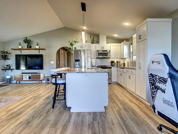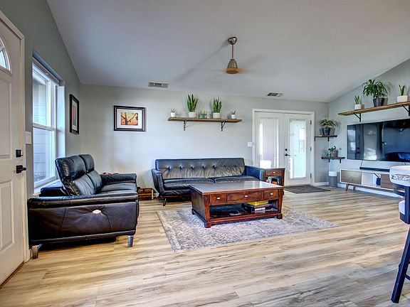Tucked down a scenic driveway and overlooking Howard Park, you will find this private feel, inviting home. Featuring 1425 sqft, three bedrooms and two full baths, the home has been updated to reflect your modern lifestyle. The living room, dining room, and kitchen area boast high vaulted ceilings, creating an airy ambiance. A French door opens to a spacious patio, perfect for outdoor enjoyment. The entire home has been upgraded with water proof high end luxury vinyl plank flooring. The recently renovated kitchen features granite counters, a custom island, new cabinets and pantry, high end under cabinet lighting, newer stainless appliances, including a new dishwasher and sink with garbage disposal, and wiring for a wine fridge. New exterior paint and main areas of the house have a fresh coat of paint. This home combines comfort and style in a convenient location that backs up to Howard Park - which has just been approved for a $1.6 million dollar renovation beginning this year!