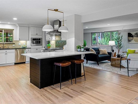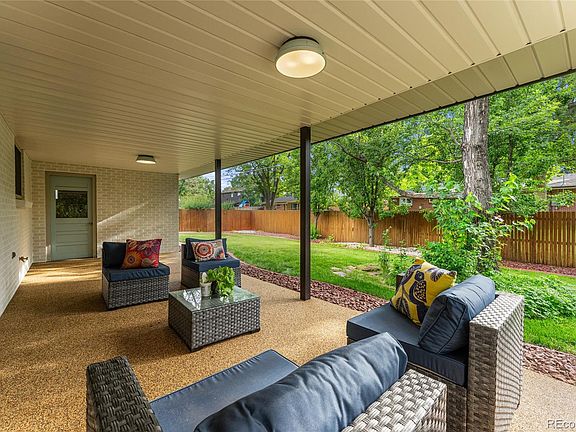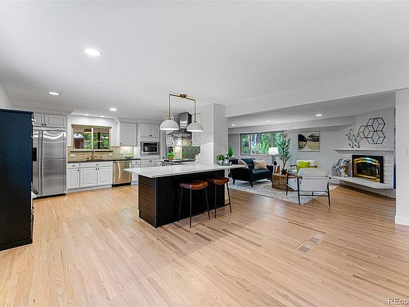 Welcome to this mid-century Holly Hills gem! Recently modernized, while still maintaining its cool 1963 vibe, the home has great flow and is filled with natural light throughout. With almost 3,000 square feet, five bedrooms and three bathrooms, this is an amazing opportunity! This property checks all the boxes—brick ranch, oversized lot, three bedrooms up, including a primary suite with private bathroom and two closets, large basement den with two large bedrooms, central air, attached garage and more! The spacious yard has mature trees, perennial flowers, sprinkler system and covered patio with a built-in, brick flower box. The kitchen space is open, with a gorgeous new quartz counter and stainless steel GE Monogram appliances, including a chef-worthy 36” gas range boasting an indoor grill. With the recent renovation, the space is truly turnkey ready and offers the rare combination of 1960s charm and modern technology. Natural wood floors throughout the entire main floor, two gas fireplaces and a kitchen pocket door are just a few of the many features. Money saving energy efficient systems include paid-off solar panels (save tons on your utility bill), an electric vehicle charger, and double pane Pella windows. The Holly Hills neighborhood is surrounded on three sides by The High Line Canal, yet the tree lined, quiet street is close to everything-The Colorado Athletic Club, stores, including Safeway and easy access to I-25. Set your showing today or come to the Open House this weekend - don’t miss the opportunity to make this fabulous home your own!