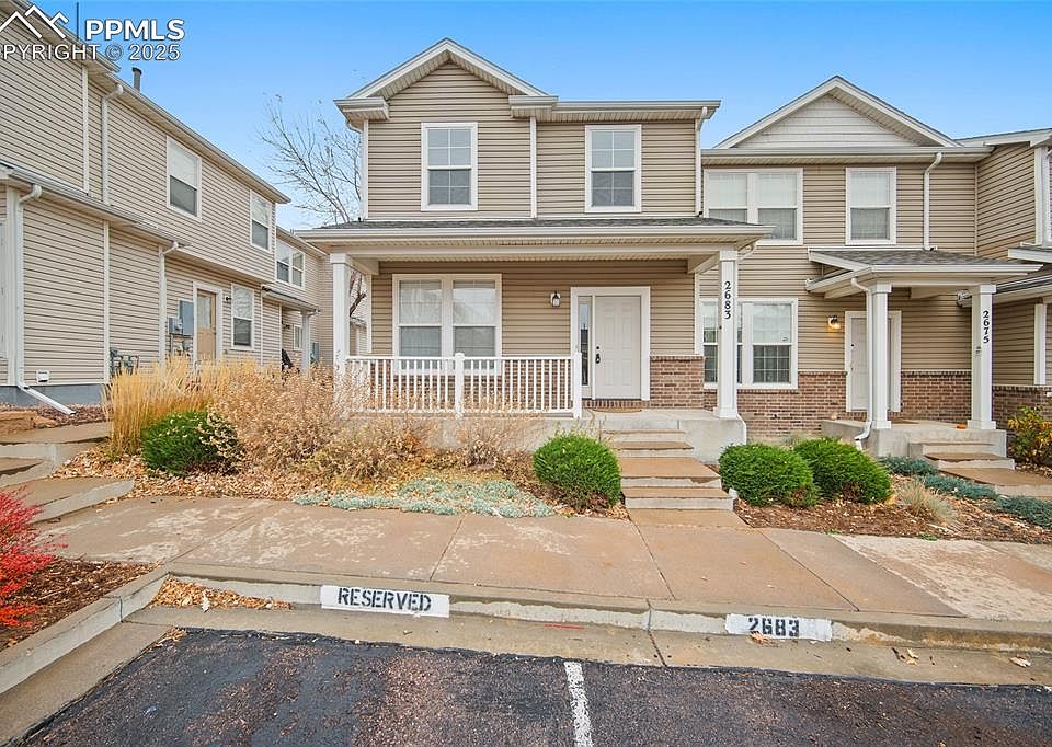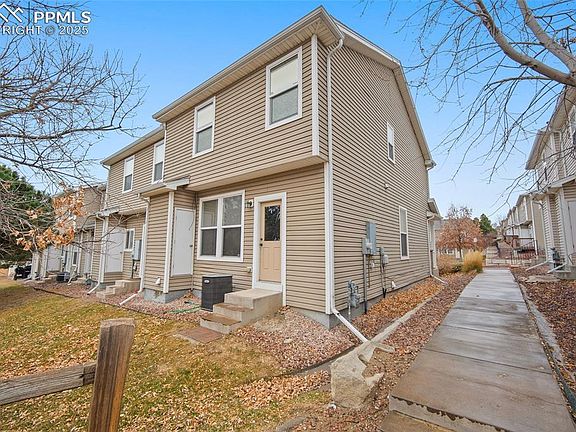Welcome to this perfectly sized two-story end-unit townhome in the centrally located Spring Creek Traditional community! Enjoy a welcoming covered front porch, perfect for relaxing outdoors. Inside, the home offers a bright, spacious living room and an inviting eat-in kitchen—great for everyday living and easy entertaining. The main level also includes a convenient laundry area with washer and dryer included. Upstairs, you’ll find three well-proportioned bedrooms, including a primary suite with its own private bath. Step out back to enjoy a grassy yard area, offering a comfortable outdoor space rarely found in townhome living. Additional highlights include central A/C, an assigned parking space, and low-maintenance exterior upkeep provided by the HOA. With quick access to Downtown, Fort Carson, Peterson SFB, shopping, restaurants, parks, and major roadways, this location makes commuting and daily errands a breeze. A great opportunity for first-time buyers, downsizers, or investors seeking low maintenance living in a convenient Colorado Springs location.