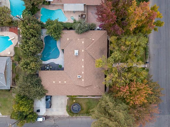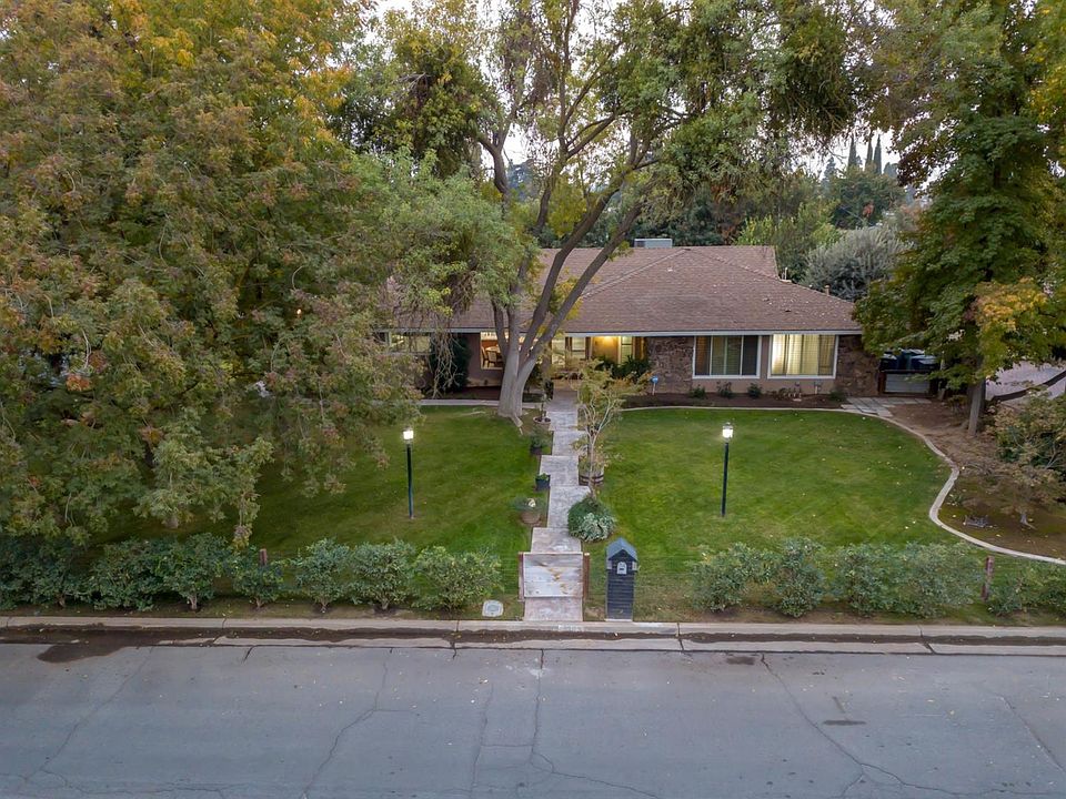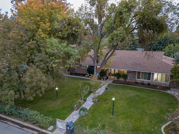 You'll love this remodeled single story 4 Bedroom Home in Northwest Fresno. The spacious open floor plan lends itself extremely well to entertaining large or intimate groups. Rounded windows surround a very spacious eating area that offers beautiful views of the large lush corner lot landscaping. Open kitchen with concrete counter tops can be seen from the dining area, family room and living room. Gas stove with pot filler, gorgeous backsplash compliments counter tops and lovely modern cabinetry. The fireplace with separates and services both living and family rooms has been remodeled with modern slate-like product. Isolated 1/4 bath off kitchen & laundry area. 2 baths that service the bedroom wing have been updated and styled to match the modern contemporary look of the home. 3 car finished garage and large sparkling pool complete the outside. Call for easy appointment