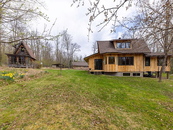 Expertly crafted home on 20 private acres near Trout Lake. Built by a master craftsman, this one-of-a-kind property is on 20 acres woodlands with wonderful privacy but just minutes from Trout Lake and the amenities of the city. The home showcases unique architectural details and superior craftsmanship throughout. In addition to the beautifully finished home, there's a 36x49 workshop complete with upper-level bedroom, full bathroom, & large studio—perfect for additional living space or guest quarters. The main level of the shop is fully finished with in-floor heat & could easily be converted to additional living space. Energy efficiency was a top priority, with both buildings featuring high R-factor insulation, Marvin Windows, rain screen siding, & dual fuel capabilities for year-round comfort. Outbuildings include an adorable garden shed (formerly housed a sauna that could easily be added back), a well-constructed storage shed, and a distinctive wood shed with a custom parabolic roof.