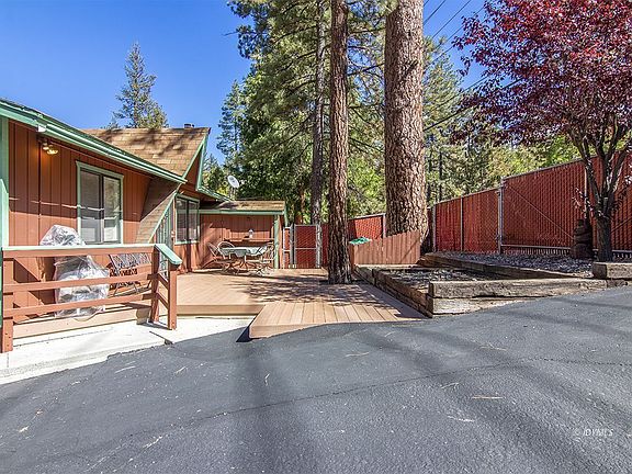 Comfortable well maintained cabin on sewer with 3 BR + extra room for family room/office/BR .Outside access just off the lower level 3rd BR. 1 full bath, fully fenced and electric gate opener so you can park in the carport. Paved driveway . Neat as a PIN! Mini split between kitchen and LR works for the entire upstairs heating and cooling. Air conditioner in family room/3rd BR. Pellet stove in LR, Trex deck in front, Small attached workshop and small utility/wood shed by deck. Well Insulated home, Refrigerator, washer and dryer included.