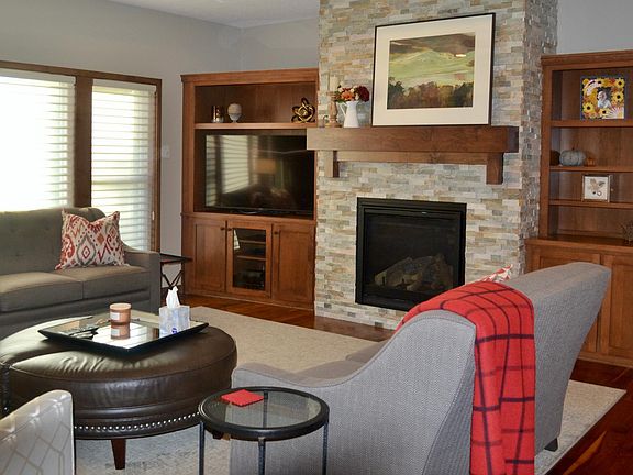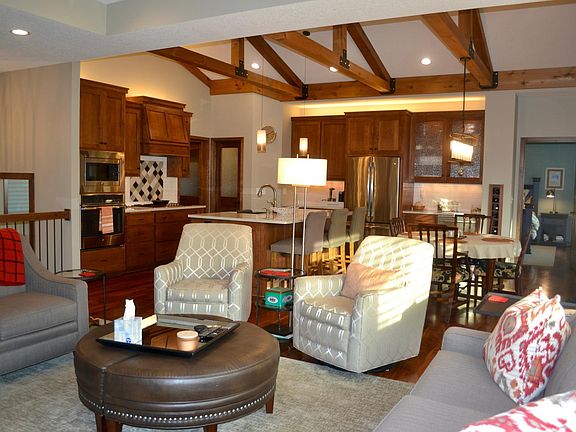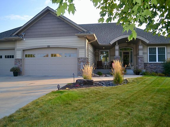 Breathtaking walkout rambler on the 16th hole of Boulder Pointe golf course. 5 bedroom, 4 bath, and 3 stall garage with heated flooring, in-floor drain and epoxy. Main floor and lower floor primary suites. Home features top of the line stainless steel appliances with walk-in pantry, separate ice maker, hidden pull out cabinet for standing mixer in island, separate beverage center and beamed ceiling in the kitchen. Full home water filter system. Surround sound through out. Custom blinds in main living area and main primary bedroom. Screened in porch overlooking golf course with separate porch for grill which also features a gas line. Tray ceilings on main level and main primary suite. Cul-de-sac with pond on one side for extra privacy. Beautiful landscaping with a private fire pit. Lower level family room features stained concrete heated flooring, wet bar, 2 bedrooms, walk out to patio. Tons of storage.