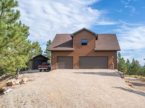 BLACK HILLS DREAM PROPERTY! Nearly 30 acres of beautiful land with amazing long range views, varied terrain, treed hillsides, open meadows, and bordering some public lands, too! Private location on the top of the hill just off a plowed road. Large garage with apartment over it! Originally built to live in while the main home was being attached to it. Enjoy this treasure as it is, or add the home of your dreams! Garage has a half bath, laundry, and is plumbed for a shower. The apartment has 2 bedrooms and one bath. Detached shed and storage container, also. A wonderful place to base your Black Hills adventures from. Located basically an equidistance from Custer and Hot Springs for convenience either way. Come have a look! Bordering BLM land that is full of wildlife - elk, deer, turkeys!
