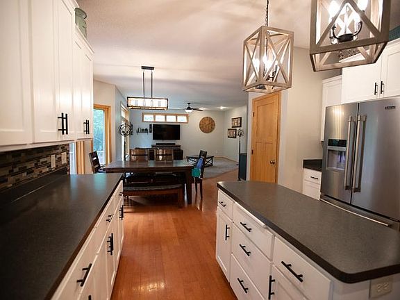 One owner QUALITY built Zeigler Custom Home with 5 bedrooms and 3 baths located one block away from 486 acre lake Fremont, boat landing and Grams Regional Park. This is a great recreational location! The 3000 +/- SF of living space has 9' ceilings on the main floor, a large three car garage that is attached and heated. There is 1 bedroom and in floor heat in lower level, and 4 bedrooms on the upper level. There are three baths, (additional 4th roughed in) and large deck and a master with private bath and walk in closet. The home is situated on a private 2.5 acre wooded lot on a dead-end road. At the end of that road is the Regional park with walking trails.